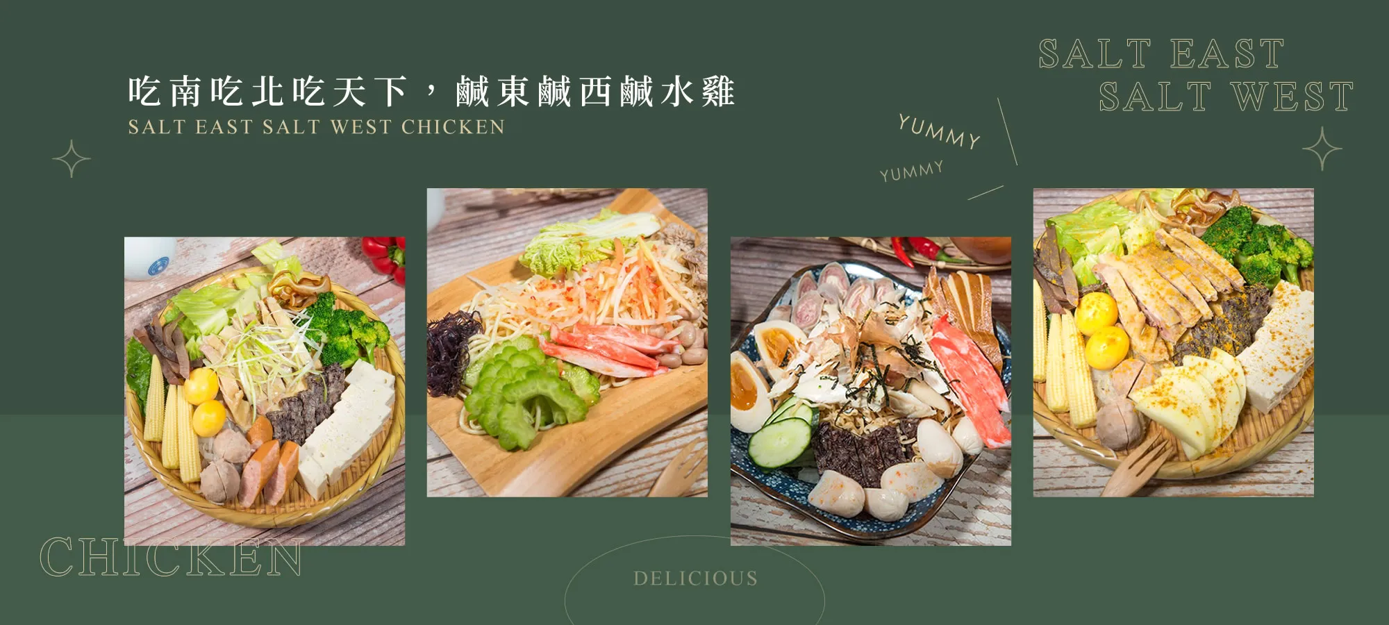 2019年,創辦人王崇霖在高雄瑞豐夜市附近開設了第一家「鹹東鹹西」,打破傳統鹽水雞的既定印象,研發出四款獨特醬汁——中式油蔥、泰式酸甜、日式和風、印式咖哩,每一口都吃得出驚喜,也吃得出我們對味道的堅持。